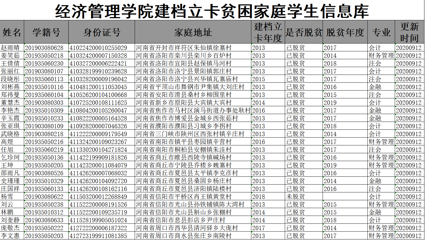 Beat365正版唯一官网必一2020年度贫困生库公示
