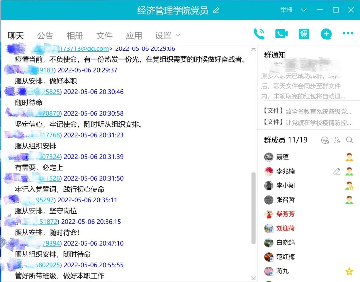 最后,全体党员教师共同学习文件精神,分享近期学生管理、教学工作心得体会,纷纷表示只要党组织需要,定会第一时间响应号召、听从指挥,责无旁贷投身疫情防控攻坚战,做到“守土有责、守土尽责、守土担责”。