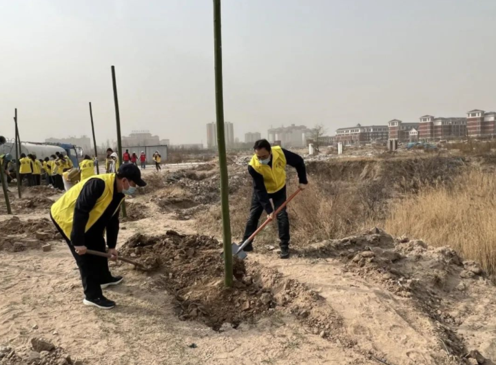 最是一年春好处,植树添绿正当时。3月11日上午,院长张召哲、副书记王盼红带队全体党员教师乘坐大巴前往开封。与开封师生集合之后,大家共同前往指定地点开展植树活动。活动中,经过合理分工分组,师生三五成群通力合作、共同植树。挥锹铲土、栽植树苗、填土踩实、提桶浇水……环环相扣的严谨规范工序,有效保证了树苗的成活率。经过1小时左右辛勤劳动,一棵棵树苗整齐挺拔,一片片空地孕育希望,校园再添新绿、生机盎然。