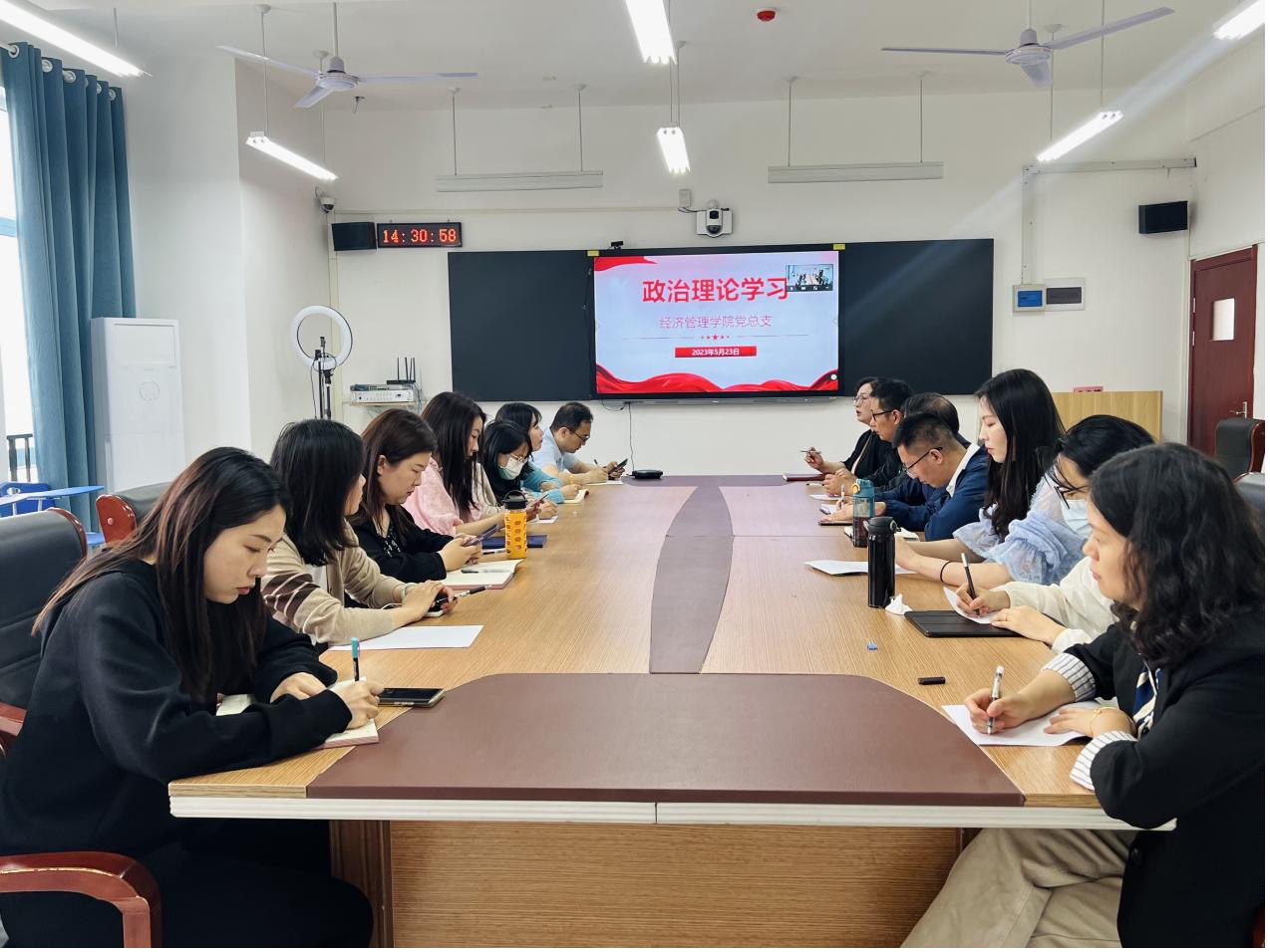 523日下午,Beat365正版唯一官网必一党总支在开封校区(北院)B306开展“学习新思想,奋进新时代”主题党日活动,共同学习《习近平著作选读》《习近平新时代中国特色社会主义思想专题摘编》《习近平新时代中国特色社会主义思想学习纲要》等部分内容。以视频连线方式,东西校区全体党员教师参加学习会,书记李兆楠主持会议。