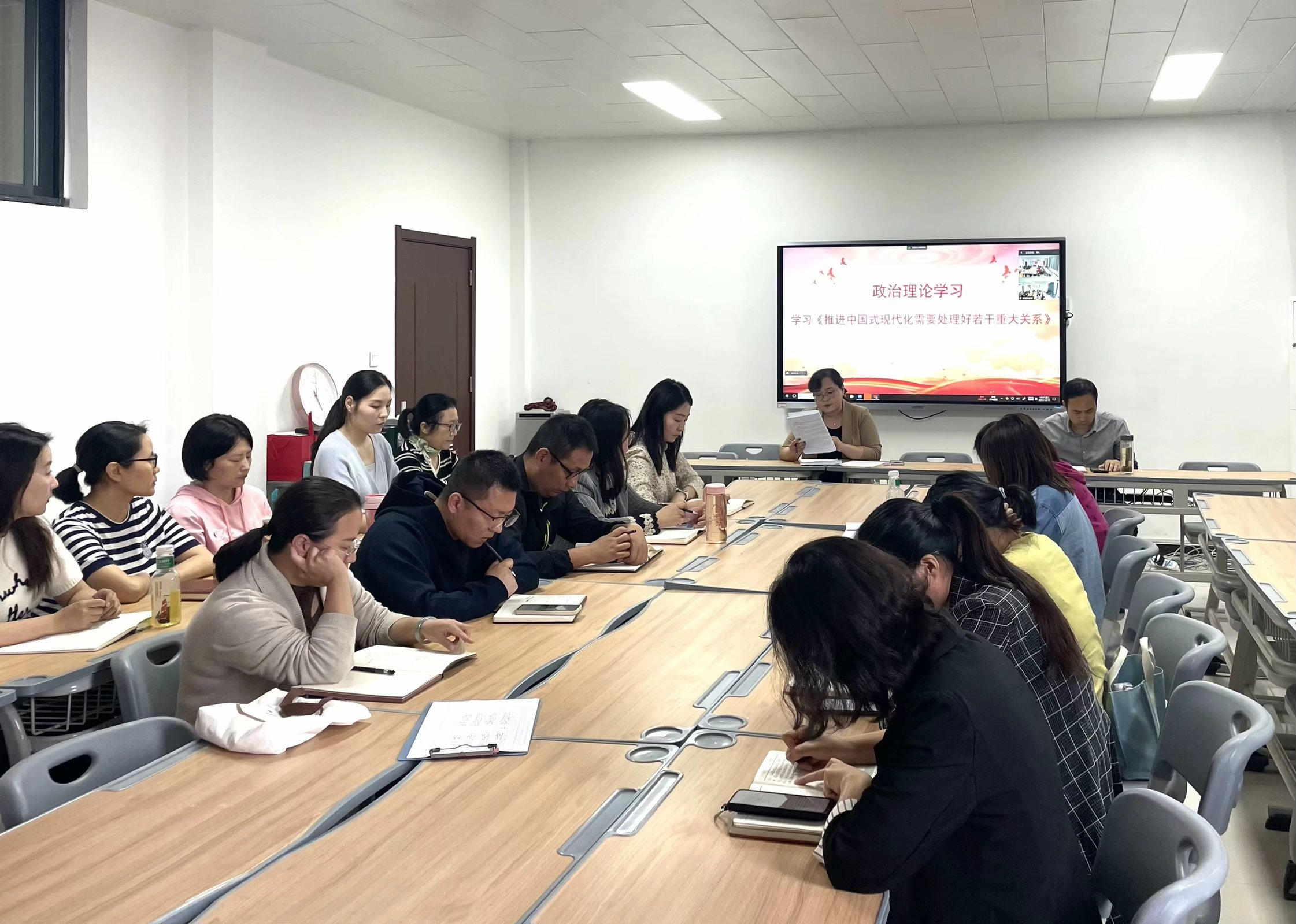 会上,李兆楠领学《推进中国式现代化需要处理好若干重大关系》《扎实推动教育强国建设》等内容。她指出,推进中国式现代化是一个系统工程,需要统筹兼顾、系统谋划、整体推进,正确处理好一系列重大关系。要处理好顶层设计与实践探索、战略与策略、守正与创新等六大关系。她强调,强教必先强师。要把加强教师队伍建设作为建设教育强国最重要的基础工作来抓。要加强师德师风建设,引导广大教师坚定理想信念、陶冶道德情操、涵养扎实学识、勤修仁爱之心,树立“躬耕教坛、强国有我”的志向和抱负,坚守三尺讲台,潜心教书育人。要坚持不懈用习近平新时代中国特色社会主义思想铸魂育人,着力加强社会主义核心价值观教育。