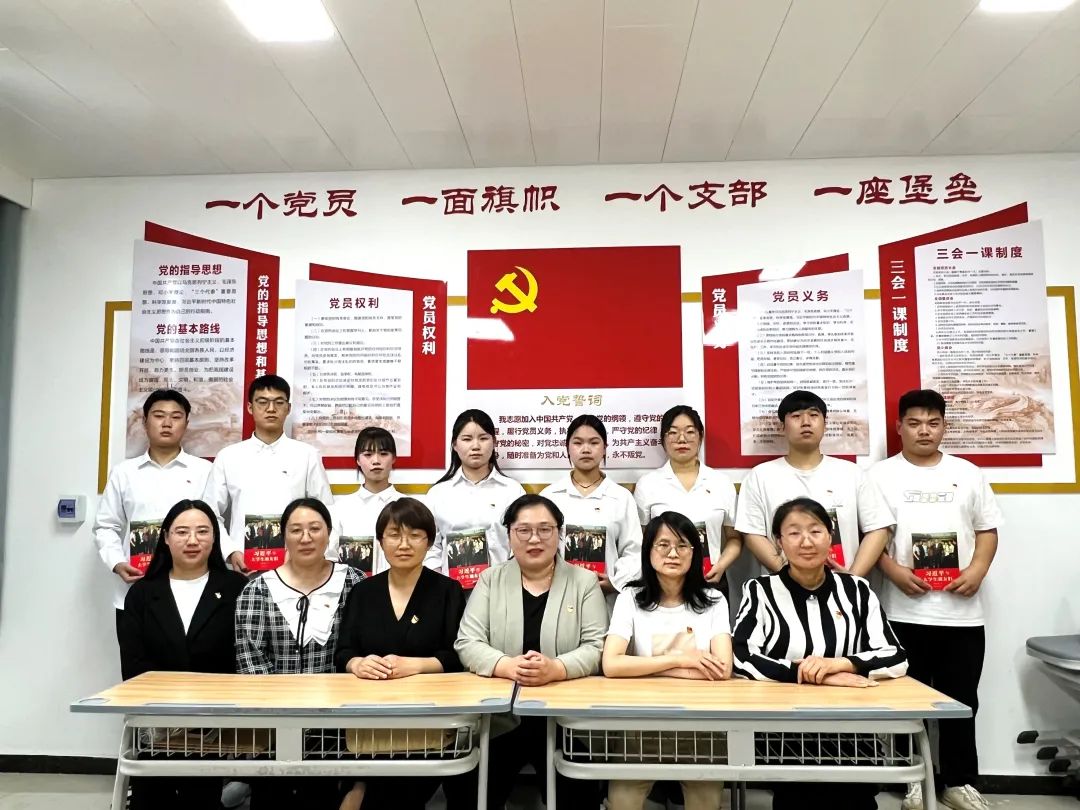 会上,郭盈新等10名同志依次向党组织汇报预备期间个人表现。入党介绍人汇报学生预备期间考察情况,就能否如期转正表明意见。随后,全体党员采取无记名投票方式进行表决。经表决,一致同意郭盈新等10名同志如期转正。随后,入党介绍人为10名同志佩戴党员徽章、赠送书籍并合影留念。