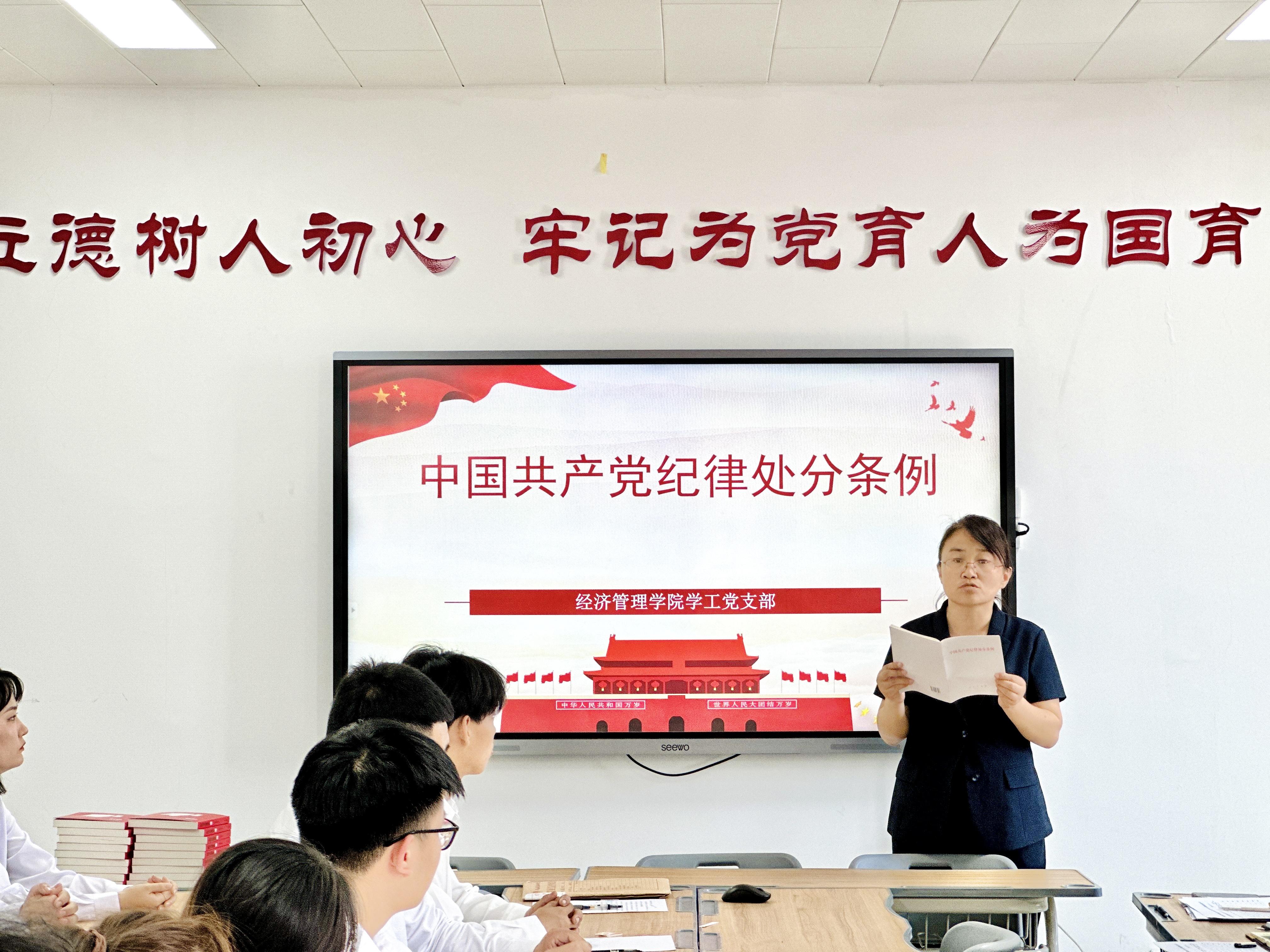 支部书记王盼红带领大家逐章逐条学习新修订的《中国共产党纪律处分条例》,希望大家要进一步学纪、知纪、明纪、守纪,始终做到忠诚干净担当,以先锋模范作用推动各项事业高质量发展,为实现中华民族伟大复兴凝心聚力。