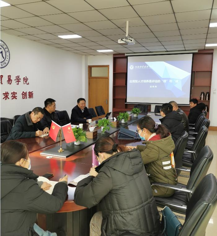 为积极营造良好氛围,扎实做好迎评促建工作,1月28日下午,pp电子邀请教务处处长边传周教授作专题报告——《应用型人才培养是评估的“根”与“魂”》,学院全体教师采取线上线下相结合的方式聆听了报告。