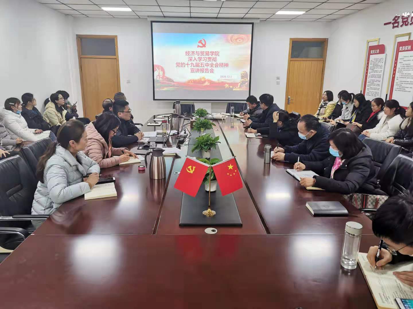 为落实校党委关于组织开展党的十九届五中全会精神宣讲活动的有关要求,推进全院师生深入学习贯彻全会精神,2020123日下午,学校“学习贯彻党的十九届五中全会精神宣讲团”成员、院党委书记张松刚在英才校区教学办公楼327会议室面向全院教师集中宣讲党的十九届五中全会精神。