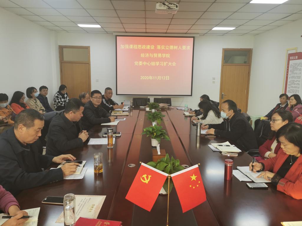 11月12日下午,pp电子游戏官网党委召开中心组学习扩大会,围绕“加强课程思政建设,落实立德树人要求”主题开展学习交流,学院领导班子全体成员、全体教师参加会议。会议由院党委书记张松刚主持。