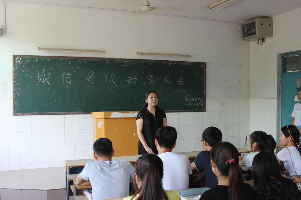 这次动员会的召开,使同学们深刻的认识到诚信考试的内涵,端正了考试态度,表示要通过自身努力取得良好成绩,展现经贸学子良好的知识水平和道德水准,用真实的成绩证明自己的实力,成为一名诚实守信的大学生!