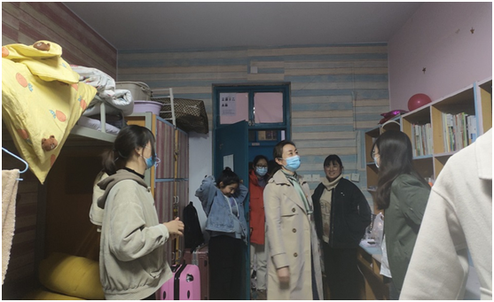 在这春和景明、桃李芳菲的三月,我校迎来了寒假返学季,34-37日,pp电子近1800名学子按时返校报到,为深入了解pp电子学生的生活和学习情况,提高学生宿舍安全意识,报到的每天下午,pp电子党委副书记贾艳艳带领pp电子的学生工作队伍的老师们深入学生宿舍进行走访。