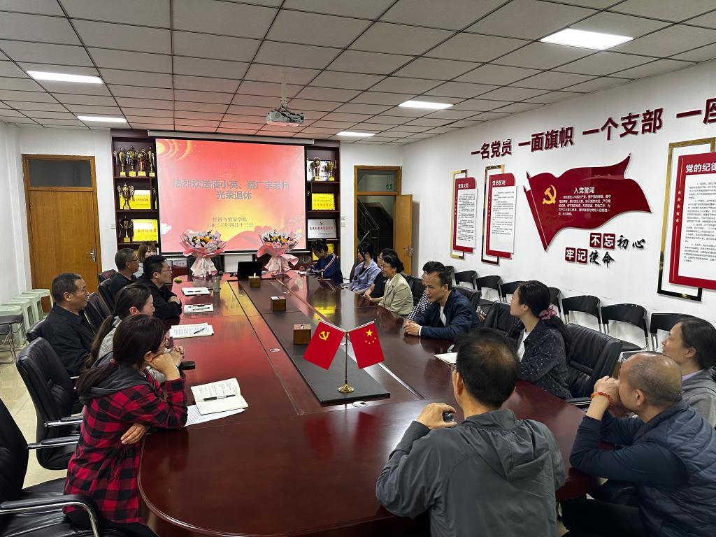 书记张松刚做最后讲话。他高度评价了两位退休教师的专业能力和人格光辉,希望他们发挥余热,继续关心和支持学院的发展;情谊在,缘分就在,号召全院老师懂得珍惜缘分,在经贸这个大家庭里融洽相处;退休是人生新阶段的起点,希望两位老师退休后能够拓展兴趣爱好,丰富退休生活,祝她们身体健康,生活幸福。