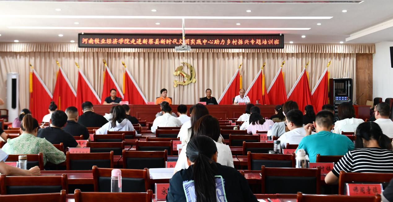 为响应校党委宣传部“四送一助力”结对帮创活动,推进“百名专家助百村(企)”工程(“双百”工程),6月27日,pp电子游戏官网院长李光带队走进新蔡县,开展乡村振兴专题培训,培训会议由pp电子游戏官网副院长梅星星博士授课,县委宣传部副部长高华民、县委党校校长出席会议,新蔡县各单位文明实践骨干参加培训。