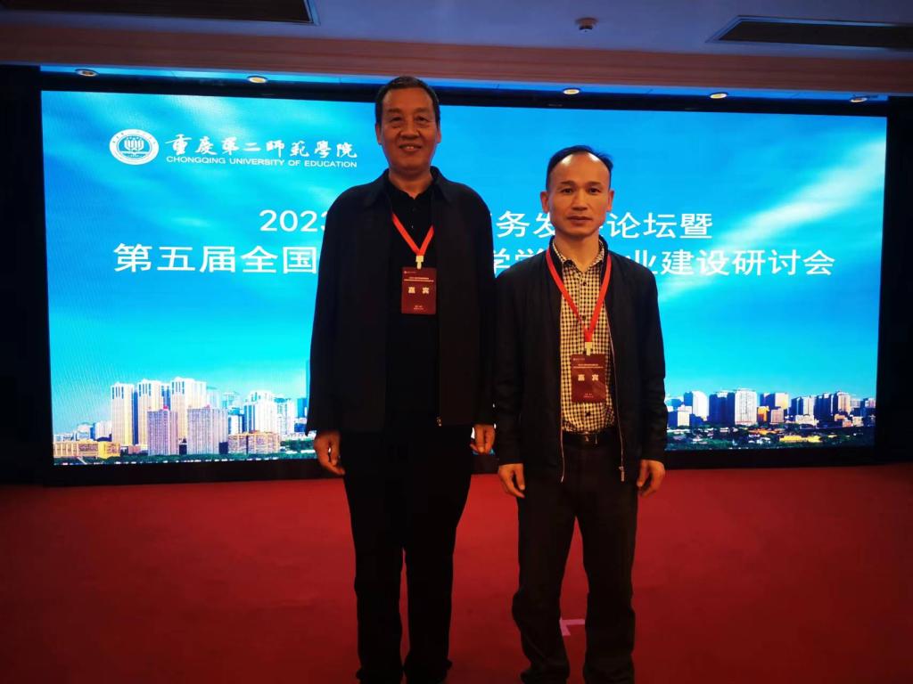 2023年11月10日到12日,经济与贸易学院院长李光、经济学教研室主任周振鹏应邀出席重庆第二师范学院主办的“2023年数字商务论坛暨第五届全国商务经济学学科专业建设研讨会”。本次研讨会由来自南开大学、上海商学院、兰州财经大学等20余所全国本科高校的100多位专家、学者,以及政府、企业代表参加。