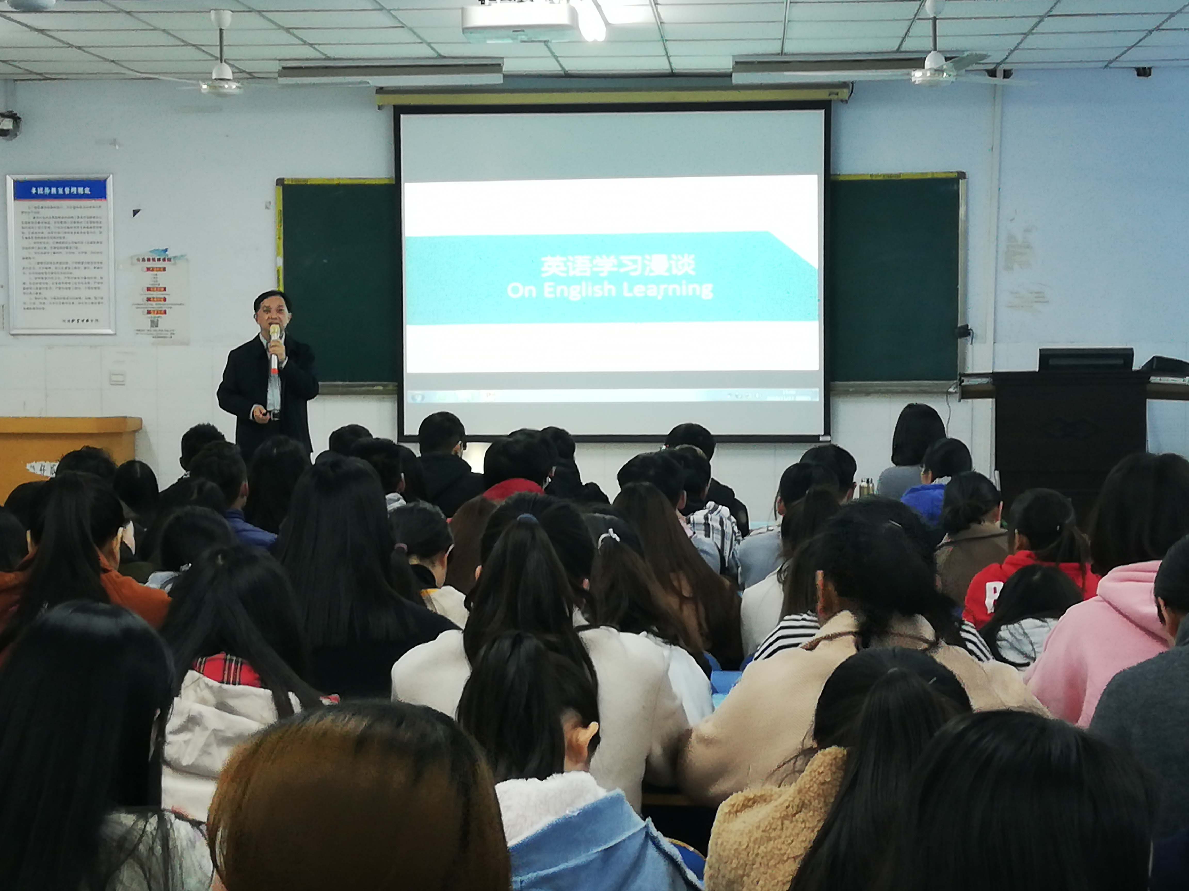 20181122日下午,经济贸易学院在E305教室举办以英语学习漫谈为主题的讲座,主讲人为河南财经政法大学国际商务专业硕士生导师白凯教授,经贸学院2017级全体学生聆听了此次讲座。