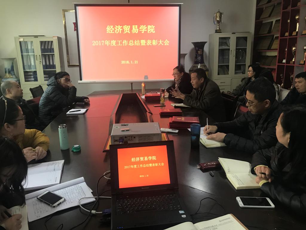 为表彰2017年度在教学、科研和管理工作岗位表现突出、成绩优异的教师,2018年1月21日下午,经济贸易学院2017年度工作总结暨职工表彰大会在英才校区教学办公楼216隆重举行,全院教职工参加了会议。会议由李光院长主持。