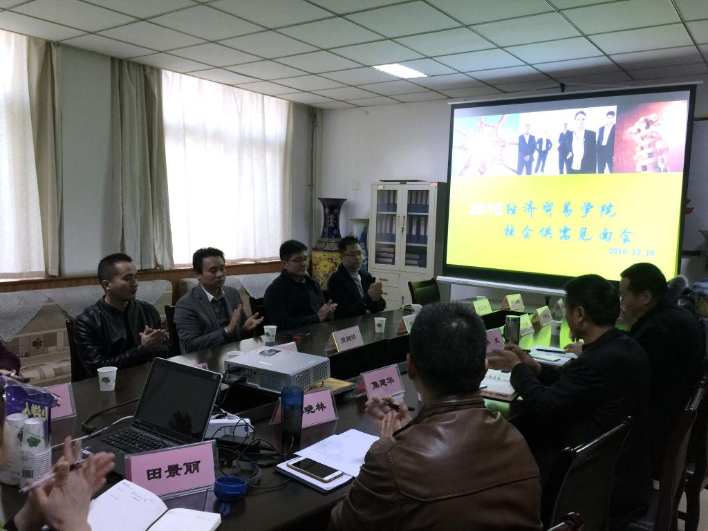 李光院长首先代表全院师生对到会企业代表表示热烈欢迎,对合作单位多年来的支持与帮助表示感谢。然后向大家介绍了pp电子召开这次校企供需见面会的目的及相关筹备情况,同时介绍了我院的一些基本情况,如开设专业、学生规模、教师队伍、人才培养,顶岗实习、就业、专升本等情况,并提出了加强校企合作的意愿,让到会代表对pp电子有了更进一步的了解。到会企业代表也分别介绍了各自企业情况,高度赞扬我院实习生近年来在社会上赢得了良好的口碑,对学生的职业素养给予极高的评价,对我院给予企业的人才支持表示感谢。会上,代表们围绕如何加快推进产学融合、校企合作、人才培养这一中心议题展开了热烈的讨论。 各方代表结合自身实际畅谈看法、提出意见和建议,大家一致呼吁,要建立院校和企业合作的长效机制,为经济贸易产业的快速发展提供可靠的人才保障,下一步希望加强合作,期待同我们建立更加密切的校企合作关系。