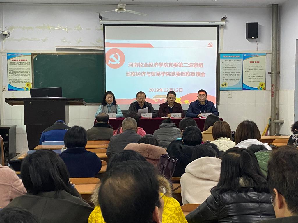 按照校党委巡察工作部署,2019年12月12日下午,校党委第二巡察组巡察pp电子游戏官网巡察反馈会在英才校区教学楼A102室召开。学校第二巡察组组长顾国超、副组长赵贺然、成员梁芩、狄波出席会议,经贸学院领导班子成员及学院全体教师参加会议,会议由经贸学院党委书记张松刚主持。