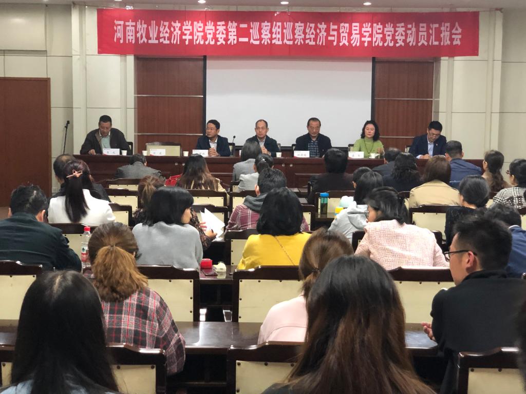 2019年10月10日下午,按照校党委《河南牧业经济学院首轮第四批校内巡察工作方案》的通知以及学校第二巡察组的统一部署,pp电子游戏官网党委在英才校区行政楼二楼会议室组织召开了第四批校内巡察工作动员汇报会。学校巡察工作领导小组成员杨成、第二巡察组组长顾国超、副组长赵贺然、巡察组成员狄波、梁琴出席会议。pp电子游戏官网全体教工、学生代表,及原经济贸易学院、原农林经济管理学院领导班子成员参加会议。会议由pp电子游戏官网李光院长主持。