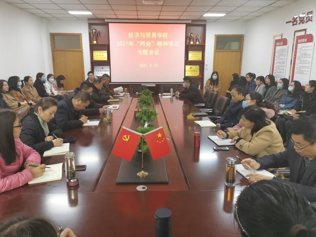 张书记强调,全院党员干部要提高政治站位,凝聚思想共识,把学习宣传全国“两会”精神,贯彻落实习近平总书记重要讲话精神作为重大政治任务,进一步增强“四个意识”、坚定“四个自信”、做到“两个维护”。一是要学习领会党和国家对2021乃至十四五期间的发展目标和工作部署,做到眼明心亮、坚定信心和国家的发展同向同行;二是要明确党和国家对办人民满意教育的最新要求,跟上教育改革方向和顺应教育改革趋势,特别是要落实好立德树人,建设高质量教育体系;三是要积极了解掌握党和政府未来经济社会发展的规划部署,特别是在加快发展现代产业体系、国内国际双循环新发展格局、构建高水平社会主义市场经济体制、全面推进乡村振兴、提升城镇化发展质量、优化区域经济布局等方面和pp电子的学科专业方向以及科研领域关系密切,是我们落实“两性两型”办学定位,服务区域经济社会发展、服务行业企业、服务乡村振兴开展人才培养和科研工作的基本遵循;四是要加强师德师风建设,提升教书育人本领。要落实习近平总书记指示,做四有好老师,继承发扬老一辈教育工作者“捧着一颗心来,不带半根草去”的精神,以赤诚之心、奉献之心、仁爱之心投身教育事业。