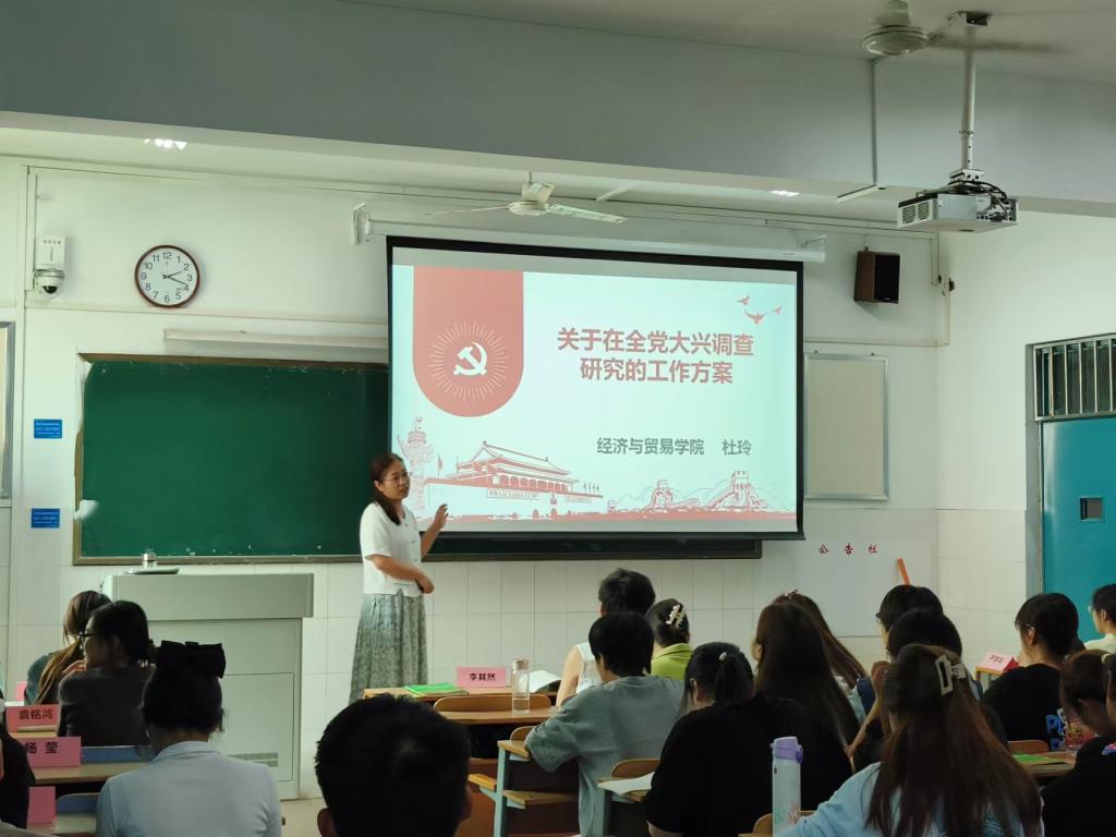 根据校党委印发的《关于在全校党员中深入开展学习贯彻习近平新时代中国特色社会主义思想主题教育的实施方案》和pp电子游戏官网党委《关于深入开展学习贯彻习近平新时代中国特色社会主义思想主题教育的实施方案》要求,5月16日中午,pp电子党委班子成员、副院长杜玲结合农林经济管理学生专业特点,为pp电子农林经济管理专业21级全体学生上主题教育专题党课,重点解读了《关于在全党大兴调查研究的工作方案》。