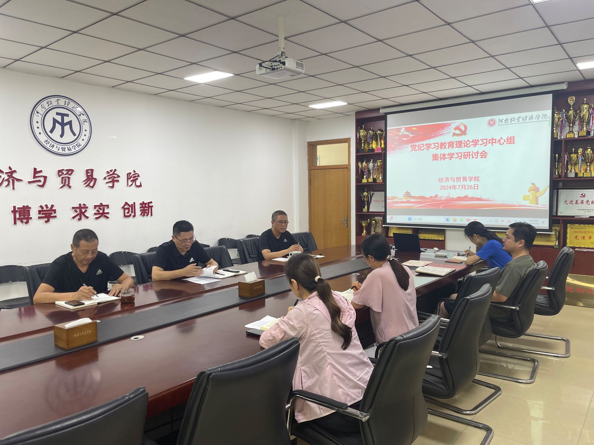 726上午院党委在英才校区教学楼327会议室召开二级理论学习中心组集体学习会议,重点学习领会习近平总书记在中央政治局第十五次集体学习时的讲话精神,并根据党纪学习教育安排部署,围绕党纪学习教育进行总结研讨。会议由院党委书记张松刚主持,全体班子成员参加了此次学习。
