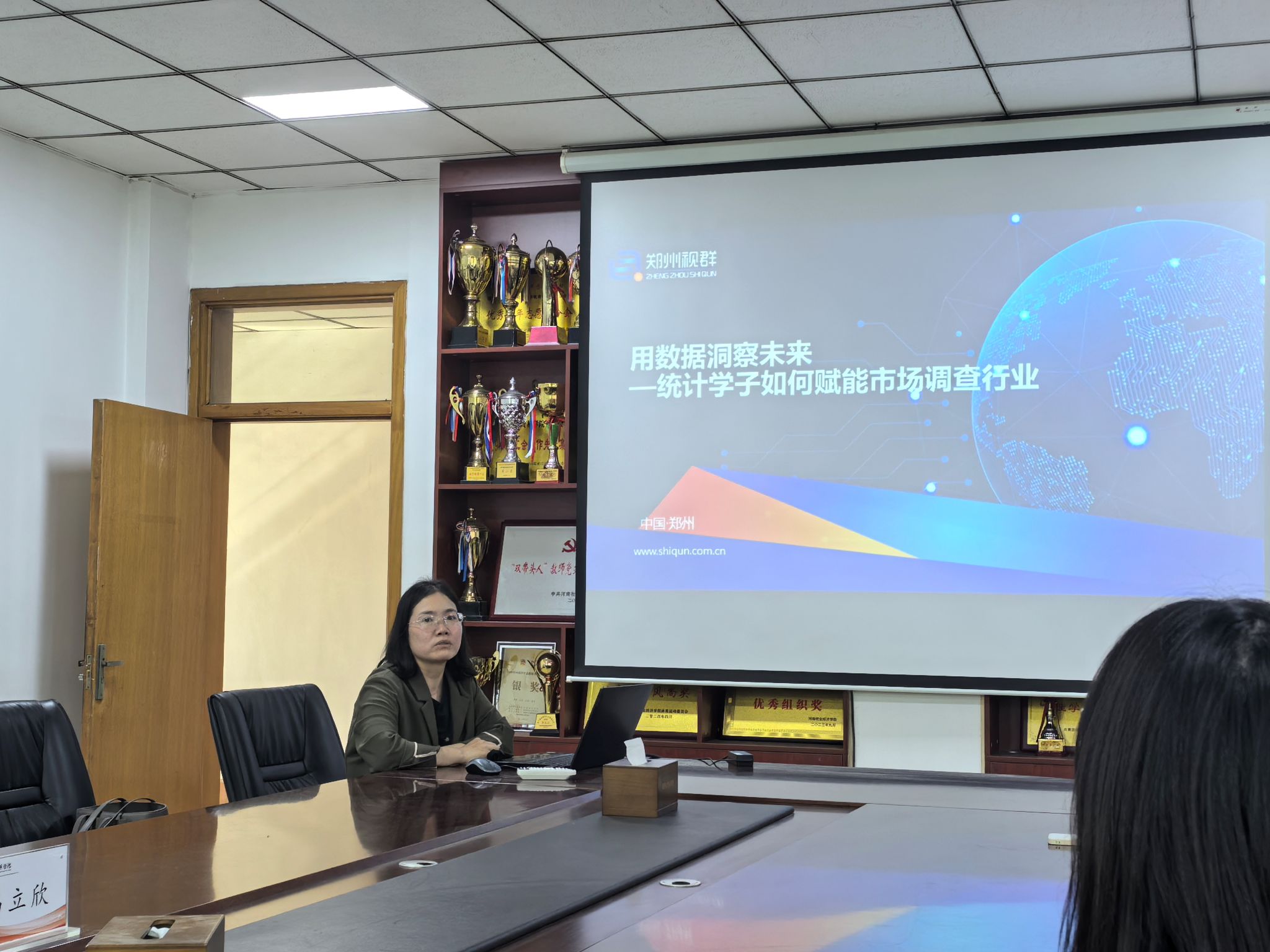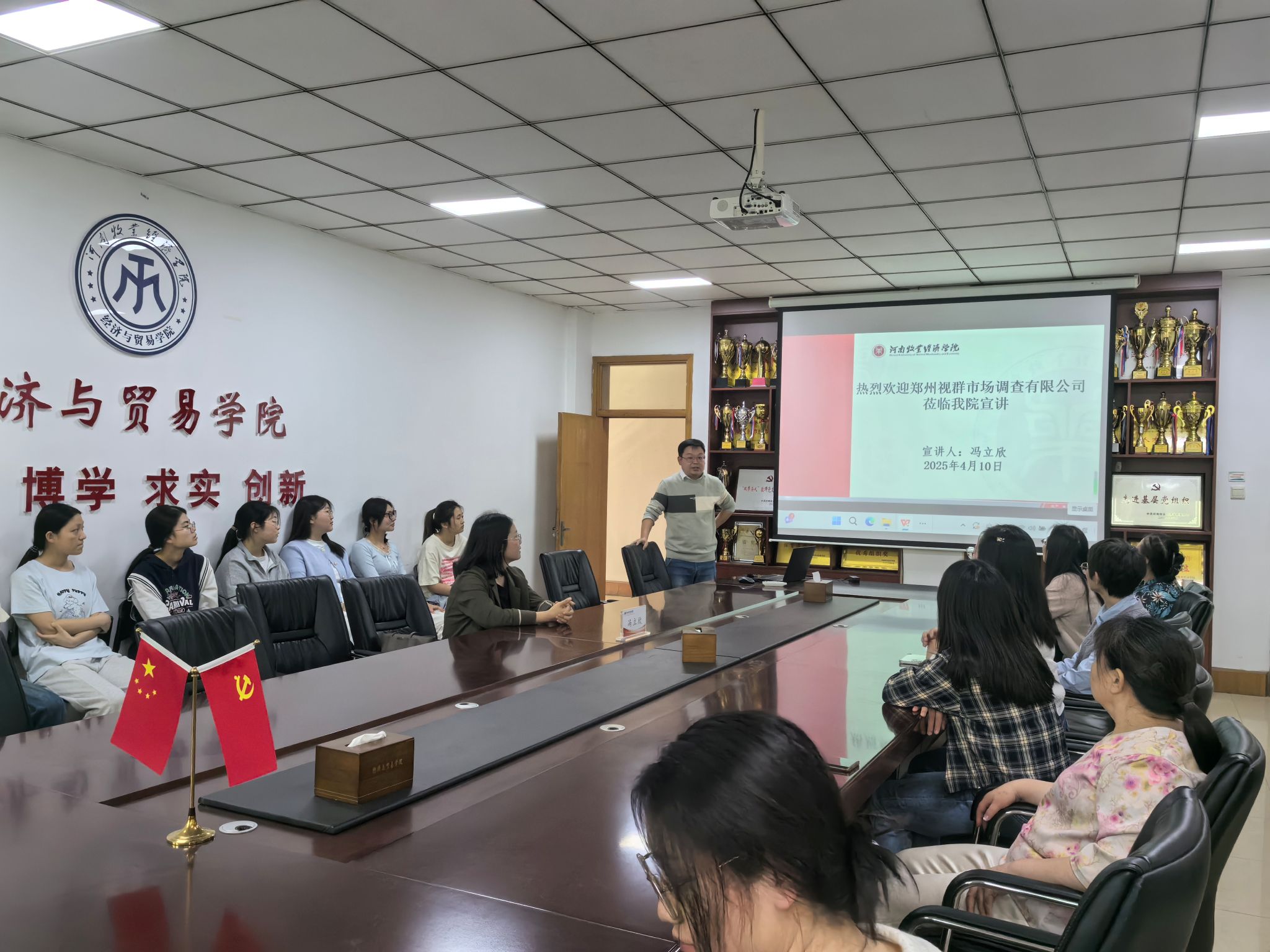 为加强校企合作,帮助学生深入了解行业动态和就业前景,2025年4月10日下午pp电子在英才校区教学办公楼327举办了郑州视群市场调查有限公司专场宣讲会,企业市场部经理冯立欣、pp电子统计学教研室全体教师及统计学专业2025届毕业生共同参与了本次宣讲会,宣讲会由pp电子统计学教研室主任王翔翔主持。