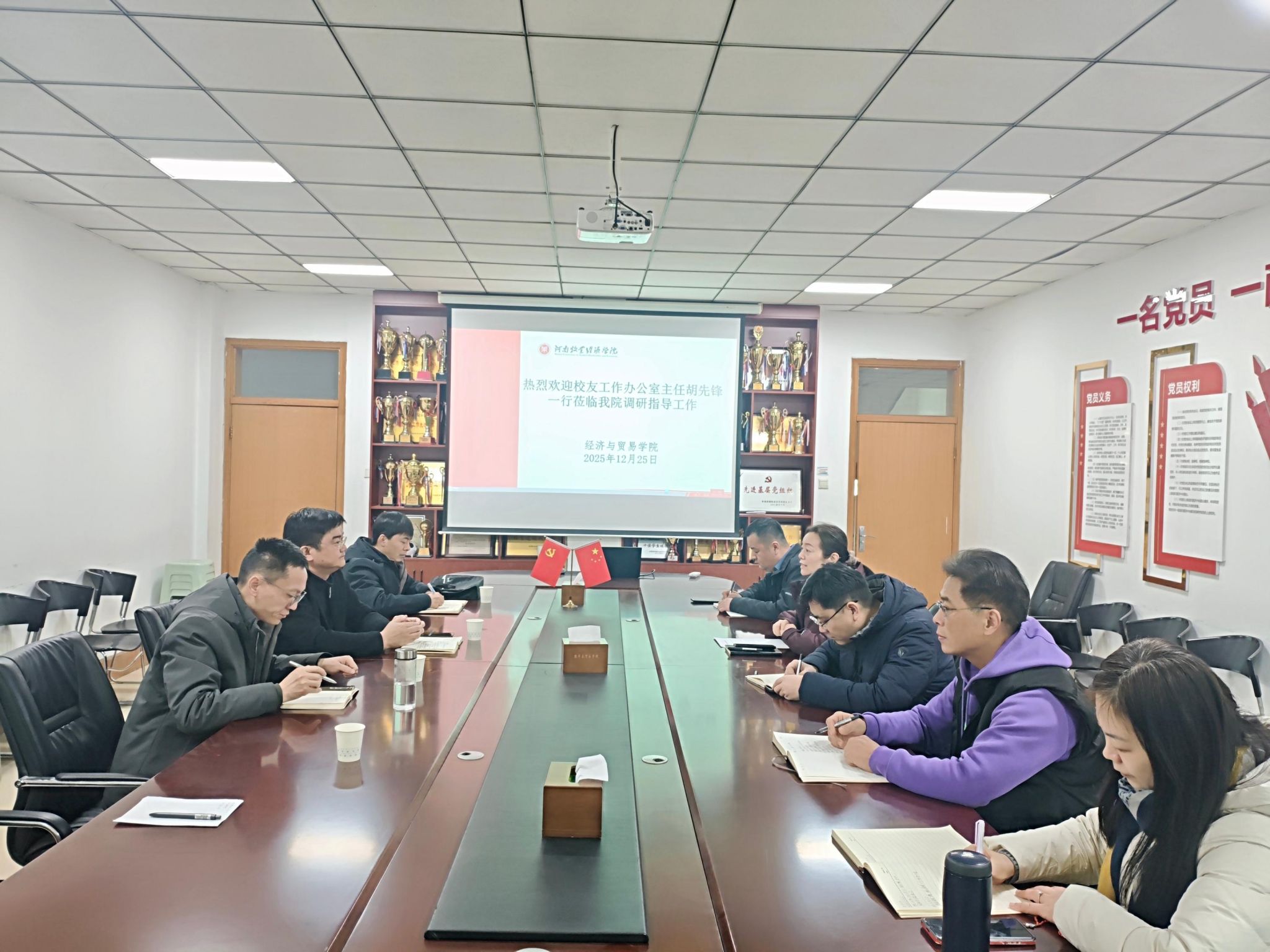 为深入了解pp电子游戏官网校友工作的发展状况,提升校友工作质量,12月25日,校友工作办公室主任胡先锋,副主任周延洲、刘博,综合科科长霍永一行莅临pp电子游戏官网,专题调研并指导学院校友工作。院党委书记贾艳艳、院长韩启昊、党委副书记孟昱龙、副院长孙晓林和吴静参加调研座谈。会议在英才校区教学办公楼327会议室举行。