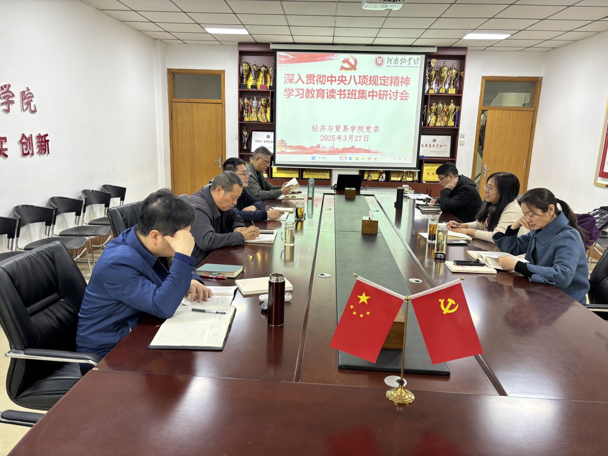 为深入贯彻中央八项规定精神,落实全面从严治党要求,按照校党委统一安排部署,3月26日至3月27日,pp电子党委在英才校区教学办公楼327会议室组织开展了学习教育读书班,通过书记领学、个人自学、专家辅导、集中研讨等形式深入学习习近平总书记关于加强党的作风建设的重要论述和中央八项规定及其实施细则精神。院领导班子成员参加了读书班集中学习教育,院党委书记张松刚主持学习会。